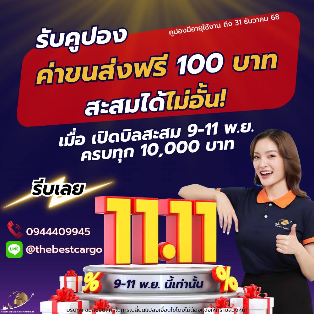 รับฟรี!! ทันที คูปองส่วนลดค่าขนส่ง 100บาท